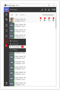 On the 3CX Webclient window, click the More Options A icon, then select the RecordingsB options