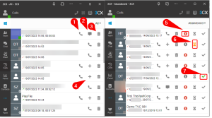 When you see the Red Exclamation 5 icon, this indicates the call is abandoned, waiting for someone to call them back. When you’re calling them back, click the Gray Hour Glass icon, it will turn Yellow 6 so your team knows someone is currently looking into it. When you’re done with it, click the Gray Tick icon, to turn it to Green 7.