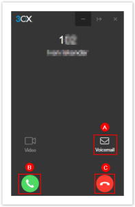 When you’re receiving an incoming call, you have 3 options: PickupB, Decline C, or send to Voicemail A