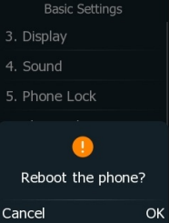 - A confirmation will appear. select the right ‘-‘ button to reboot the phone