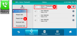 3. Tap one of the call entries B to call back, and tap the i C icon to see more detail information about the call