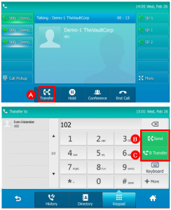 3. Tap on Send B button for attended transfer or B Transfer C button for blind transfer