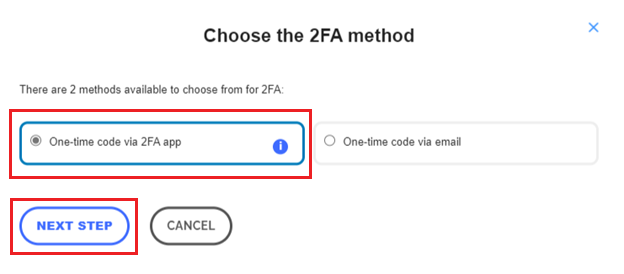 2.1. If “One-time code via 2FA app”