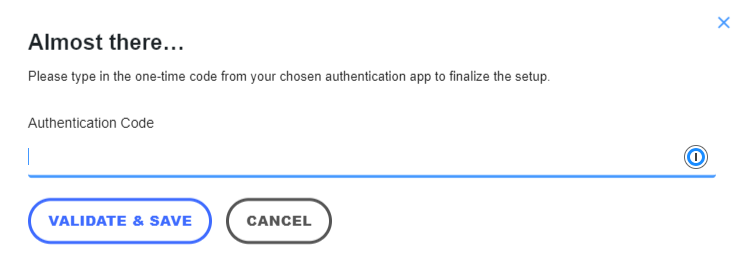 d. Enter your authentication code then click “Validate & Save”