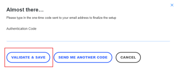 c. Type in the one-time code sent to your email address to finalize the setup.