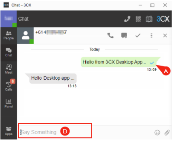 3. Type your SMS message on the Say Something B box. When the message is sent, it will show a blue tick A icon next to the message.