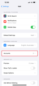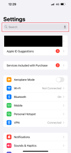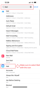 - Go onto settings, scroll down to access the search bar and search for Mail
