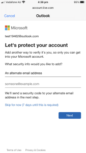 4. You may be prompted to setup additional security for your email. Select your desired security measure and follow the instructions they provide.