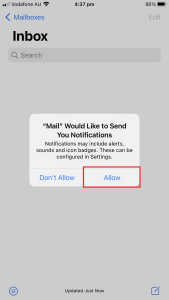 NOTE: The standard Mail app for iPhone does not support shared mailboxes