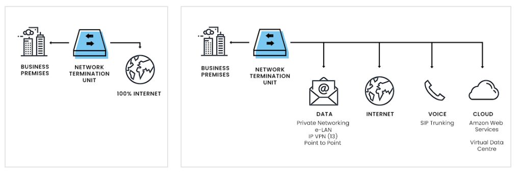 Fast broadband that is flexible to better suit your needs. Choose to allocate your service just to the internet or split it across data, internet, voice or cloud.